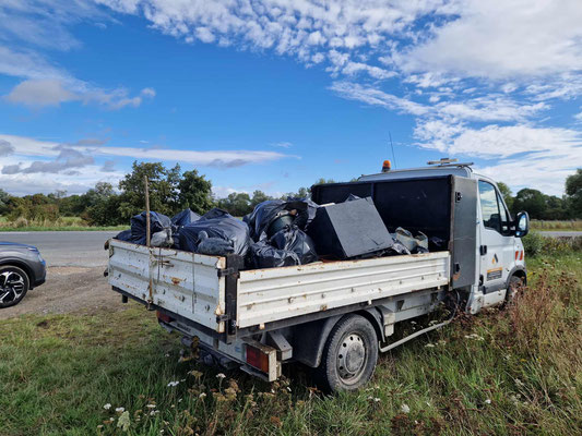 Nettoyage de la Baie de Somme le 18 mars 2017 par les chasseurs : Malgré le vent et la pluie 70 chasseurs, aidés par 20 mytiliculteurs, 20 bénévoles du Petit Train et le Syndicat Mixte de la Baie de Somme, ont ramassé entre 80 et 100m3 de bouteilles (plastique et verre), bidons et autres déchets insolites. Tout à l'honneur des chasseurs, très peu de douilles de cartouches figuraient au tableau de chasse. Merci à eux d'être venus.